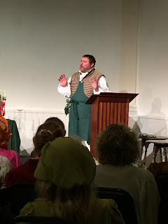 The Mission theatre is small and casual. The performance was almost sold-out and many people were in period dress (loved that!). The talk was about 1.5 hours. It was funny and enlightening. He painted great pictures of the celebrations during that time. Time and money well-spent. Other than the admission process being a bit disorganized, it was a fun evening.